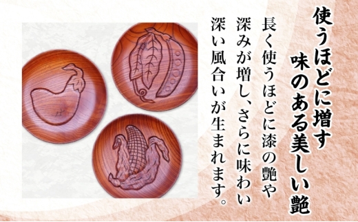鎌倉彫の銘々皿は、お使いいただくほどに漆の艶はより一層深みを帯び、木目の表情も豊かに変化していきます。