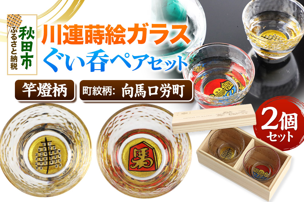 ■名称:川連蒔絵ガラスぐい呑ペアセット【竿燈柄・向馬口労町「将棋の駒に馬」】