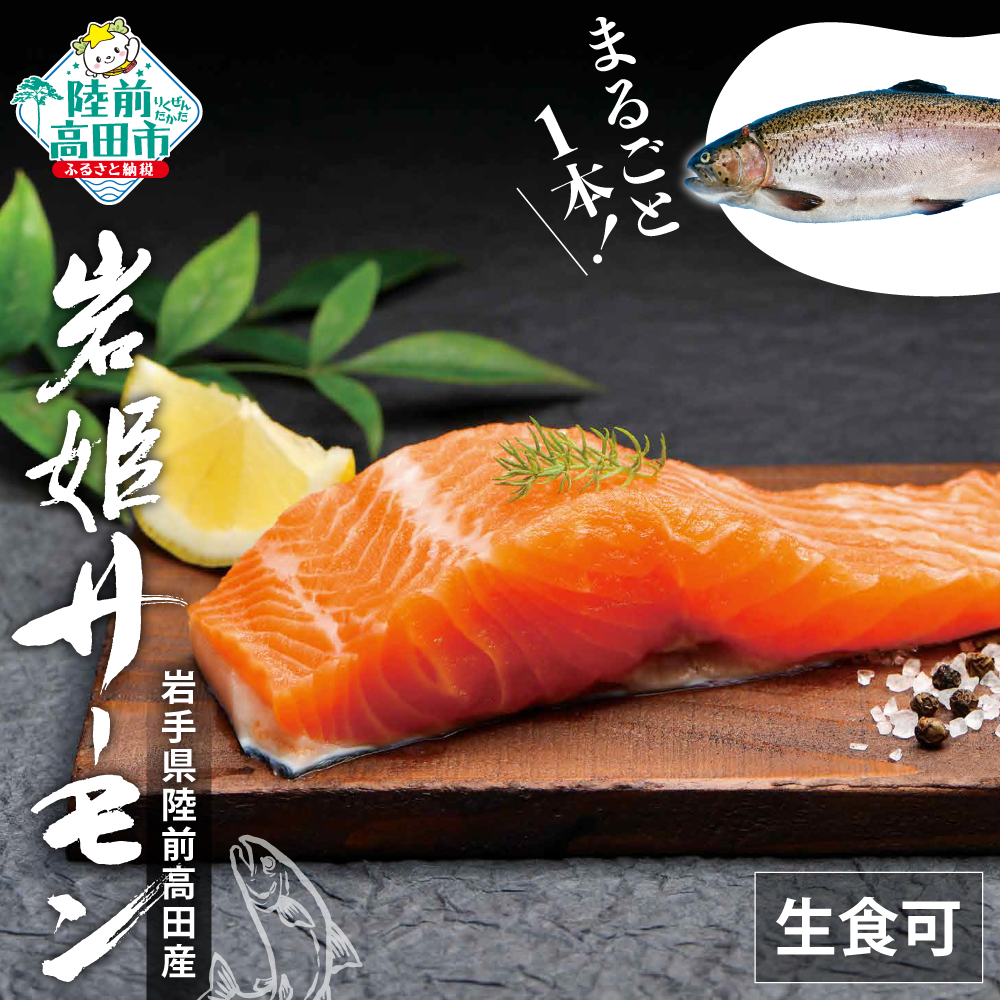 当返礼品は、「岩姫サーモン」丸ごと1尾を内臓処理してお届けいたします。程よく脂ののった旨みの強いサーモンは生食でもお召し上がりいただけます。お刺身はもちろん、お寿司やお鍋の具材としてもオススメです。