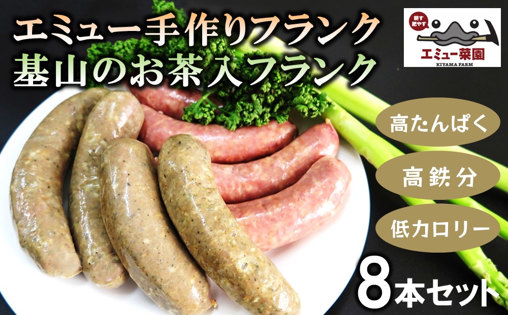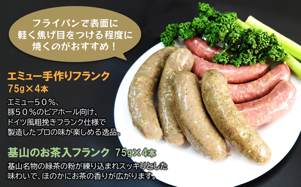 基山のお茶入り粗挽きフランクは、基山名物の緑茶の粉が練り込まれたスッキリとした味わいで、ほのかにお茶の香りが広がります。