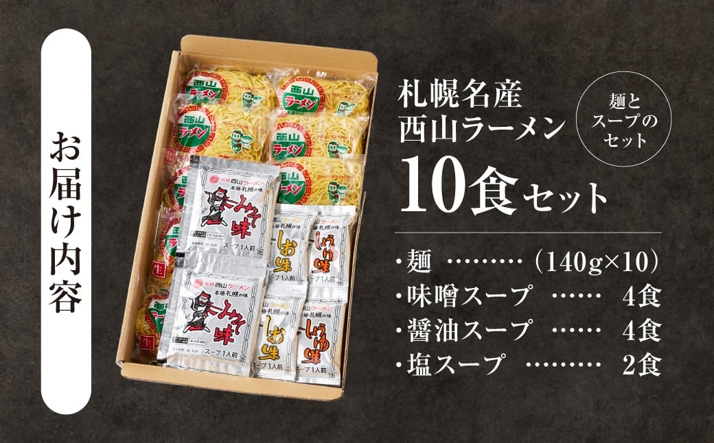 ■関連キーワード:ラーメン 10食 食べ比べ 味噌 醤油 塩 3種 セット 中太麺 スープ付き 味噌ラーメン 醤油ラーメン 塩ラーメン 生ラーメン サッポロ グルメ お取り寄せ ご当地ラーメン 札幌名産 西山ラーメン 贈り物 ギフト 北海道 札幌市