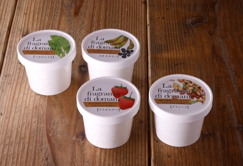 ◆あすかルビー(苺)…明日香村産の<あすかルビー>をフリーズドライにして粗く砕いてジェラートに入れているので、食べる場所による味の変化を楽しめます。