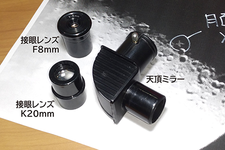 接眼レンズ F8mm(75倍/24.5mm) K20mm(30倍/24.5mm径)