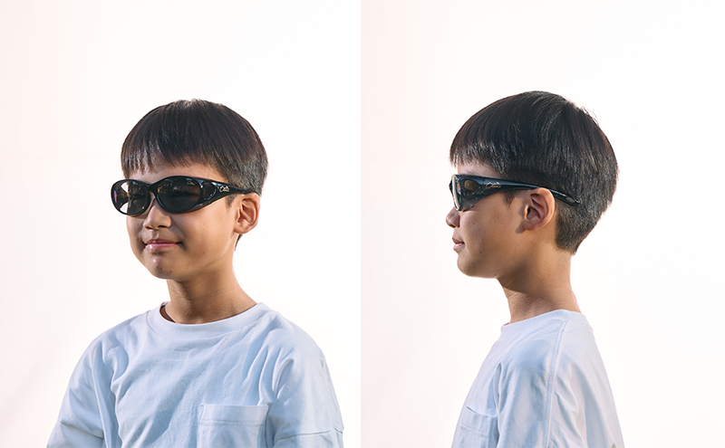 メガネと眼の周辺部までをスッポリと覆い、上下左右からの光やホコリまでをカバーしてくれます。