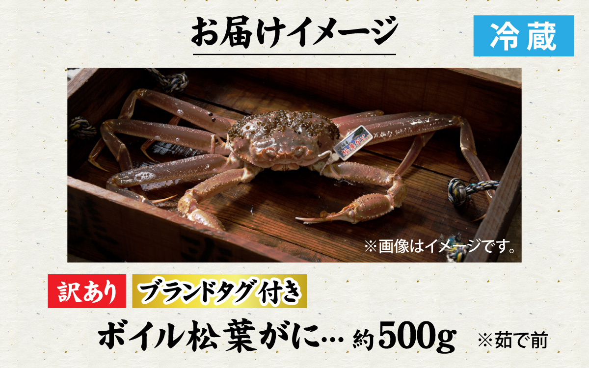 本品は、ブランドタグ付きの正規品。発送直前に生きた松葉がにを丁寧に茹で上げ、冷蔵でお届けいたします。