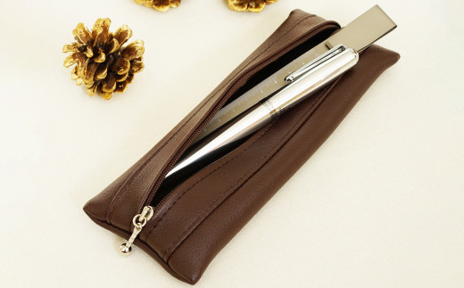 内側の生地は汚れが目立ちにくい上質な国産布で、カラーはダークブラウンを選びました。大切な文房具を優しく包み込んでくれる、そんなイメージを思い浮かべながらこの生地を選択。