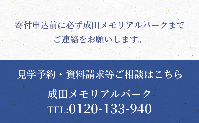 ※寄付申込前に必ず成田メモリアルパークまでご連絡をお願いします。(0120-133-940)