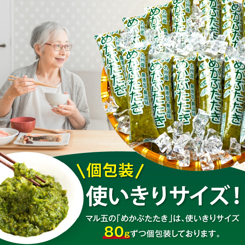 マル五の「めかぶたたき」は、使いきりサイズ80gずつ個包装しております。