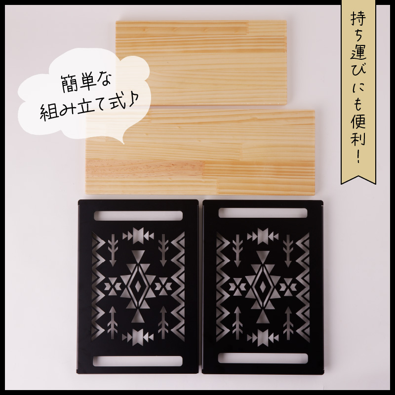 艶消し黒色で塗装されており、サビにくいです。木材もセットなのでお手元に届いたら、すぐに使用可能です。
