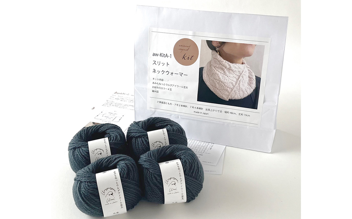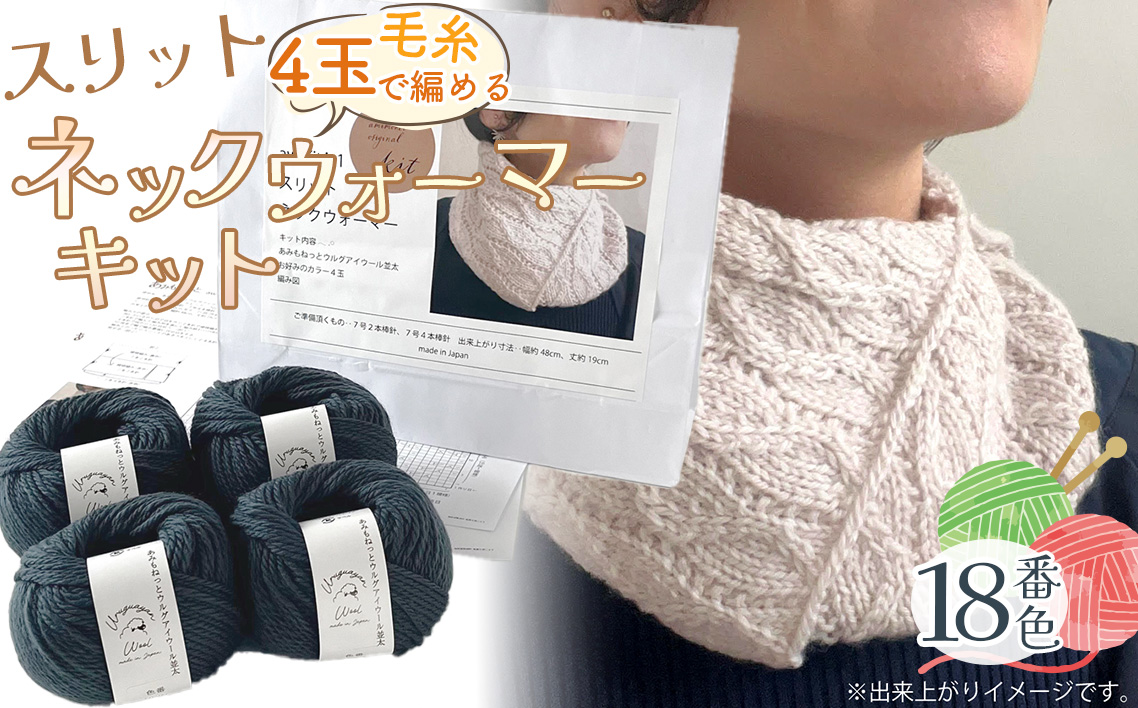 #検索キーワード : 編み物キット ネックウォーマー 手編み 毛糸 ウール100% 並太毛糸 スリットデザイン 冬小物 首元アイテム ハンドメイド 趣味 手作り 編み図付き 愛知県