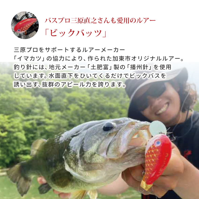 三原プロをサポートするルアーメーカー「イマカツ」の協力により、作られた加東市オリジナルルアーです。