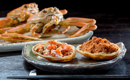 甲羅にあるカニ味噌、内子、外子は味わい深く、親蟹でないと堪能できない美味しさです。