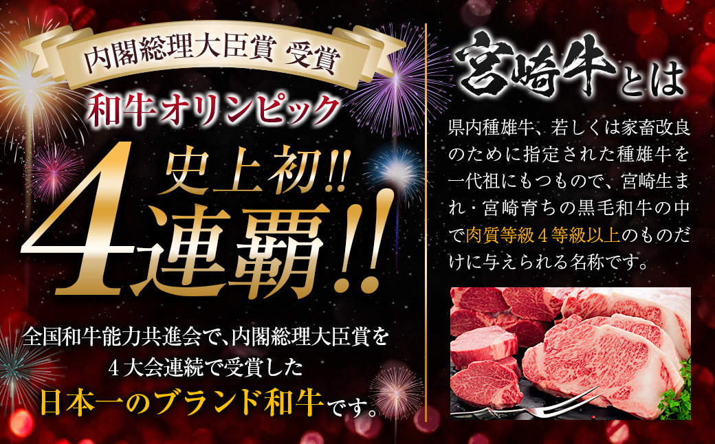 県内種雄牛若しくは家畜改良のため指定された種雄牛を一代祖にもつもので、宮崎生まれ・宮崎育ちの黒毛和牛の中で肉質等級4等級以上のものだけに与えられる名称です。