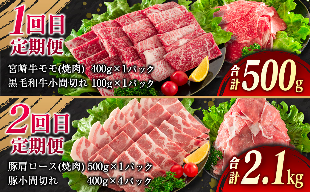 「宮崎牛&黒毛和牛」と「宮崎県産豚肉」を、 5か月間月替わりでお届けする『牛肉・豚肉の月替わり堪能セット』を返礼品としてご用意いたしました。