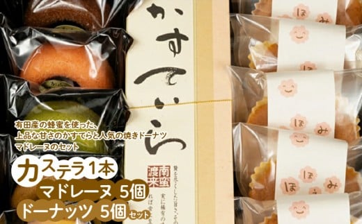 かすてら1本とドーナツ5個とマドレーヌ5個