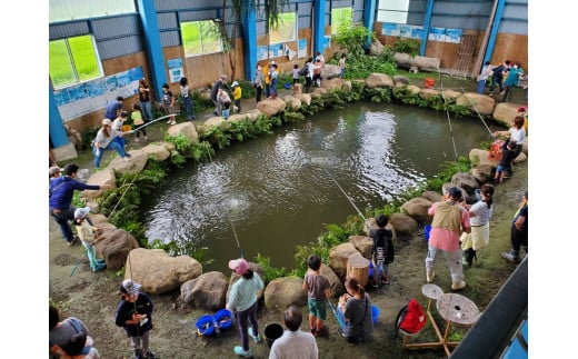 黒姫山や戸隠山からの水が集まる鳥居川の清流を使った釣り堀です。