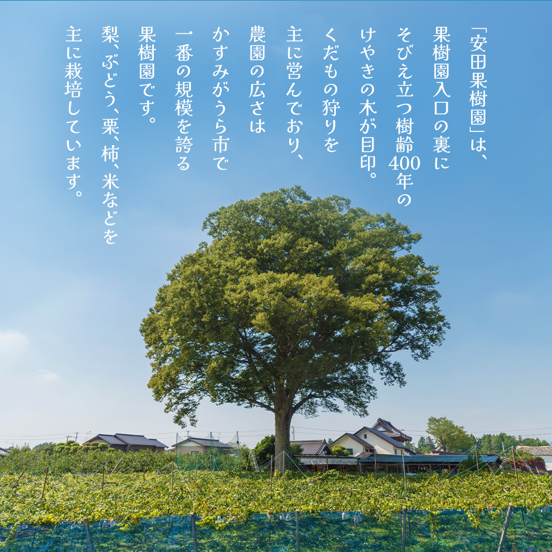 梨、ぶどう、栗、柿、米などを主に栽培しています。