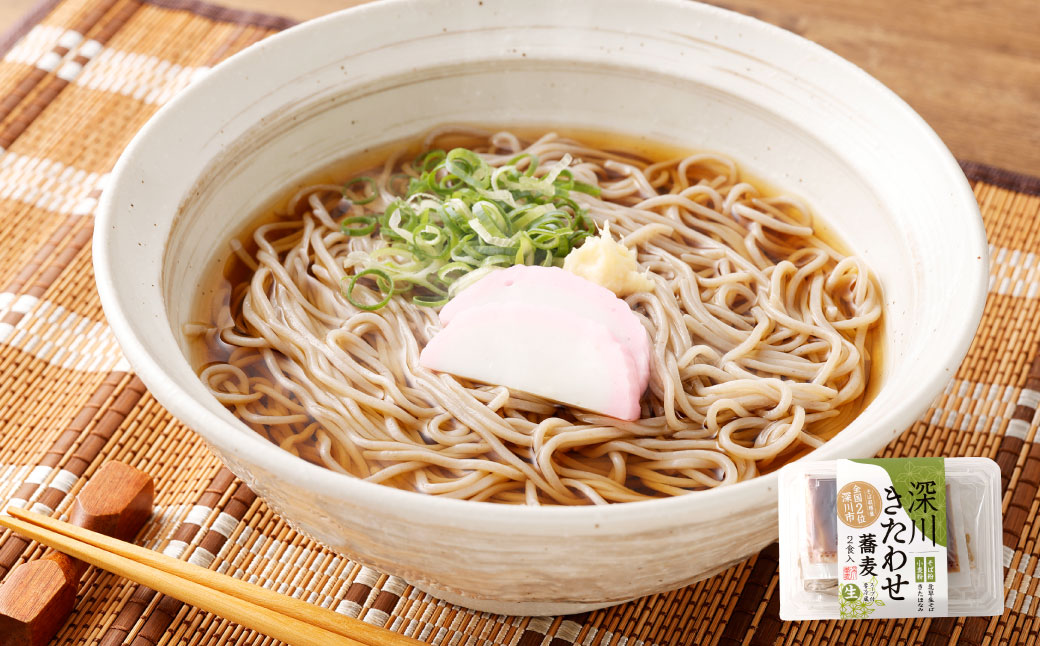 めん / そば粉(そば(深川産))、小麦粉(小麦(深川産))、小麦たん白、食塩 / pH調整剤、(一部に小麦・そばを含む)