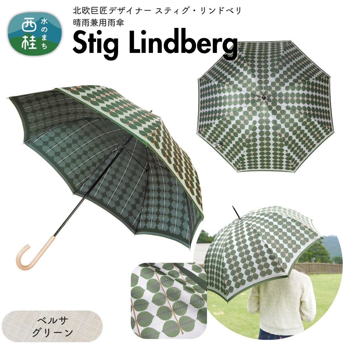 高級織物傘【婦人長傘】 スティグ・リンドベリ 晴雨兼用傘 ベルサ グリーン 北欧デザイン 傘 レディース 槇田ブランド / 雨具 雨傘 日傘 親骨60cm UVカット 8本骨 手開き UV加工 送料無料 山梨県 槇田商店【n0640-01_mak】-[n0640-01_mak]