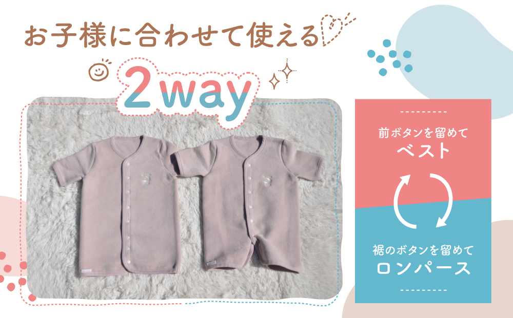 2way仕様で、ホックの留め位置でベストorロンパーススリーパーを選べます。