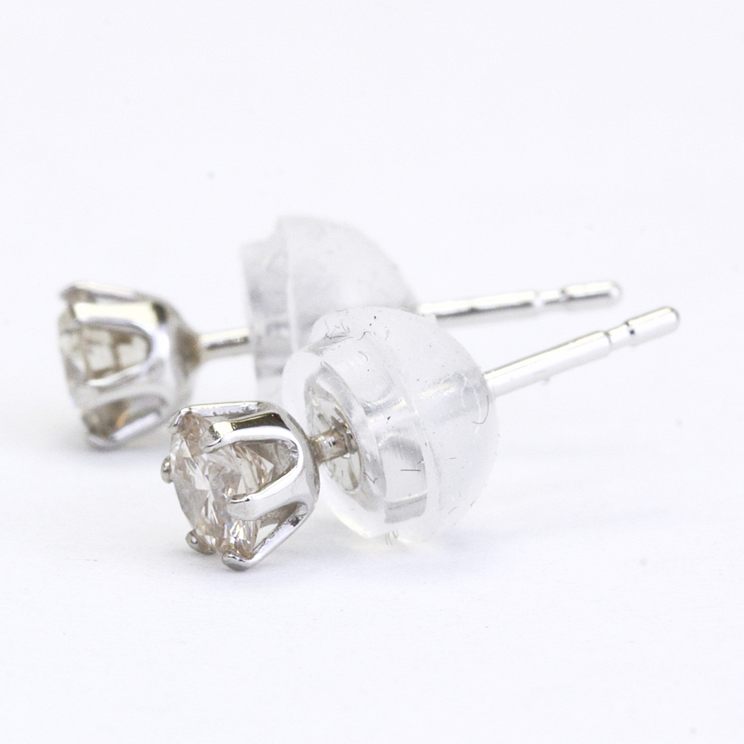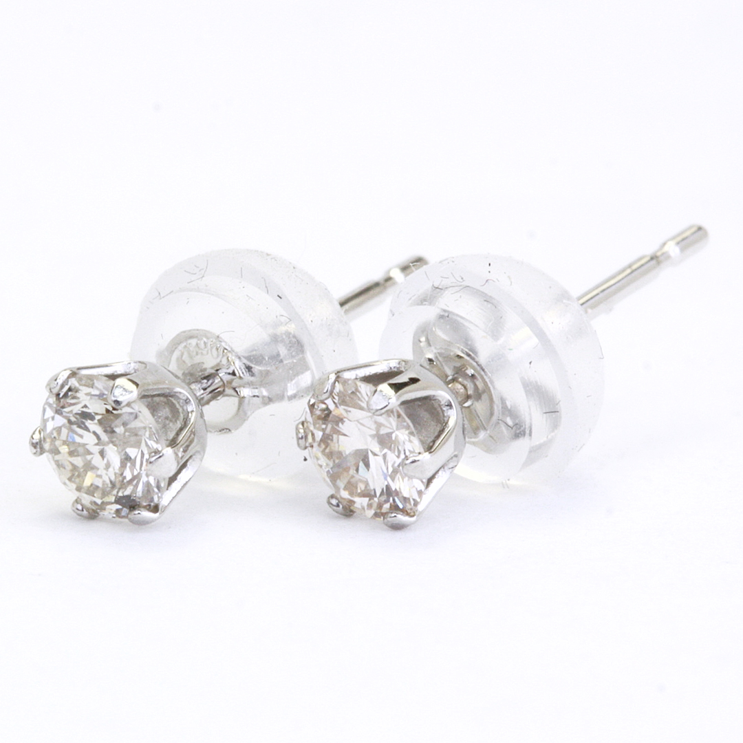 ベーシックな6本爪のデザインの一粒ダイヤモンドスタッドピアスで、キャッチは外れにくい地金+シリコンタイプです.