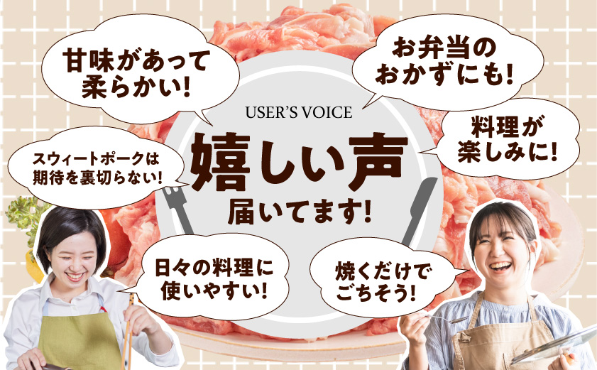 豚肉はとってもジューシーなので炒め物、豚丼、ロース肉はしゃぶしゃぶ、鶏肉は唐揚げや手羽先の甘辛煮などオススメです!