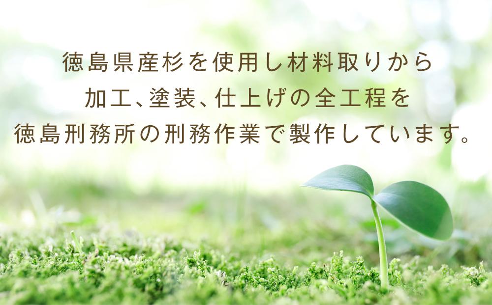 徳島県産杉を使用し、全工程を徳島刑務所の刑務作業で製作しています。