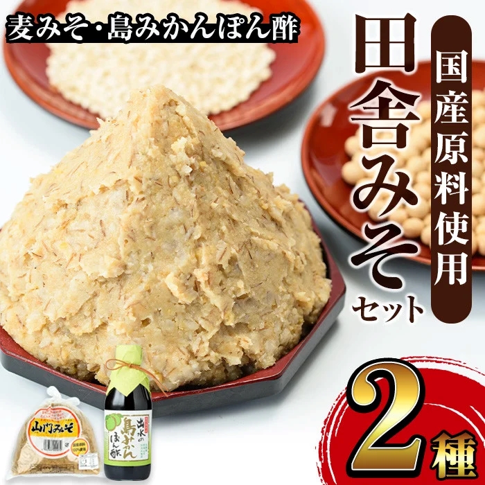 国産原料のみを使用し、昔ながらの製法で作った香り豊かな手作り味噌と、出水長島で収穫した島みかんを手絞りして丁寧に作り上げた、味わい深いポン酢のセットです。