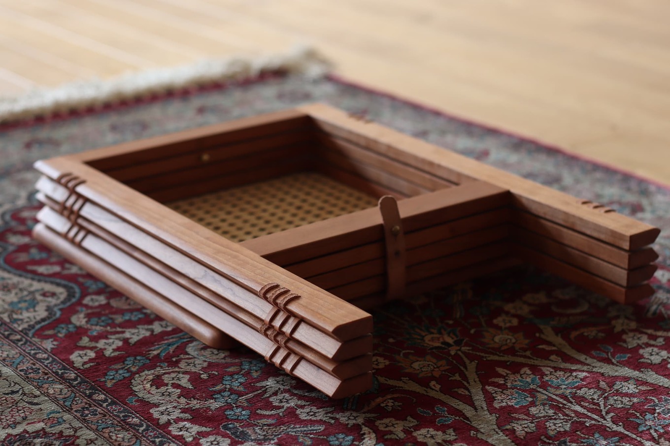 伝統的な木組の技法を用いて、細く薄い材を強固に組むことで、木製ながら非常に軽量で持ち運びにも優れます。