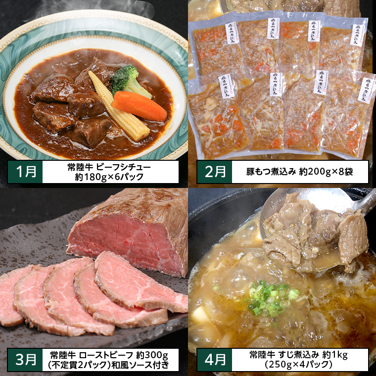 4月:【常陸牛】すじ煮込み250g×4