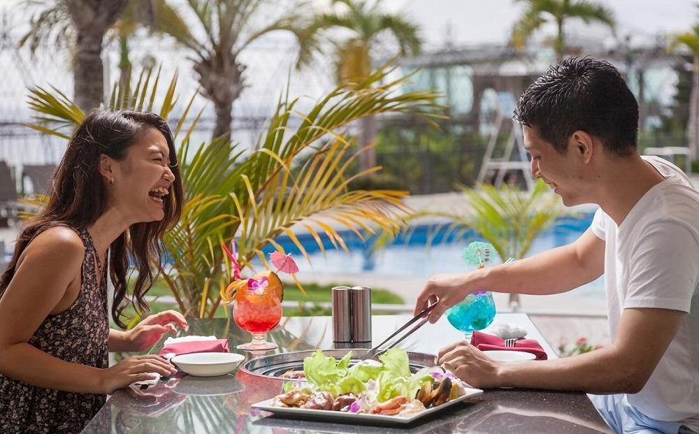 レストラン「THE DINING 暖琉満菜」の和・洋・中の夕食ビュッフェ又は「B・B・QガーデンCHI」のBBQバイキングから選べる夕食付プランです。