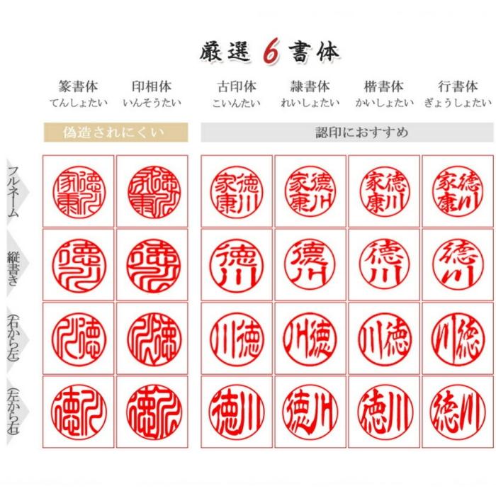 ※画像の記入例を参考にご希望の彫刻文字、書体、文字の配置、印鑑ケースを申し込みフォーム内の備考欄へ記入してください。