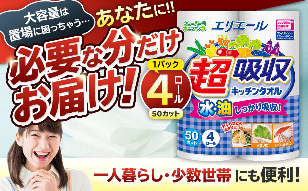 水も油もしっかり吸収し、電子レンジにも使用可能です。