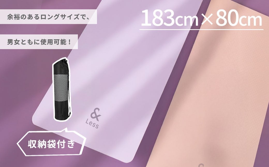 こちらのヨガマットは、183cm×80cm のワイドサイズで、男性でもゆったり使える広さが特徴。