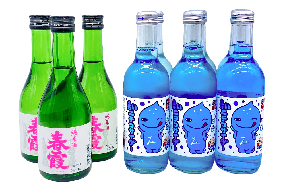 ■内容量:青いミズモサイダー1本300ml×6本、春霞純米酒300ml×3本