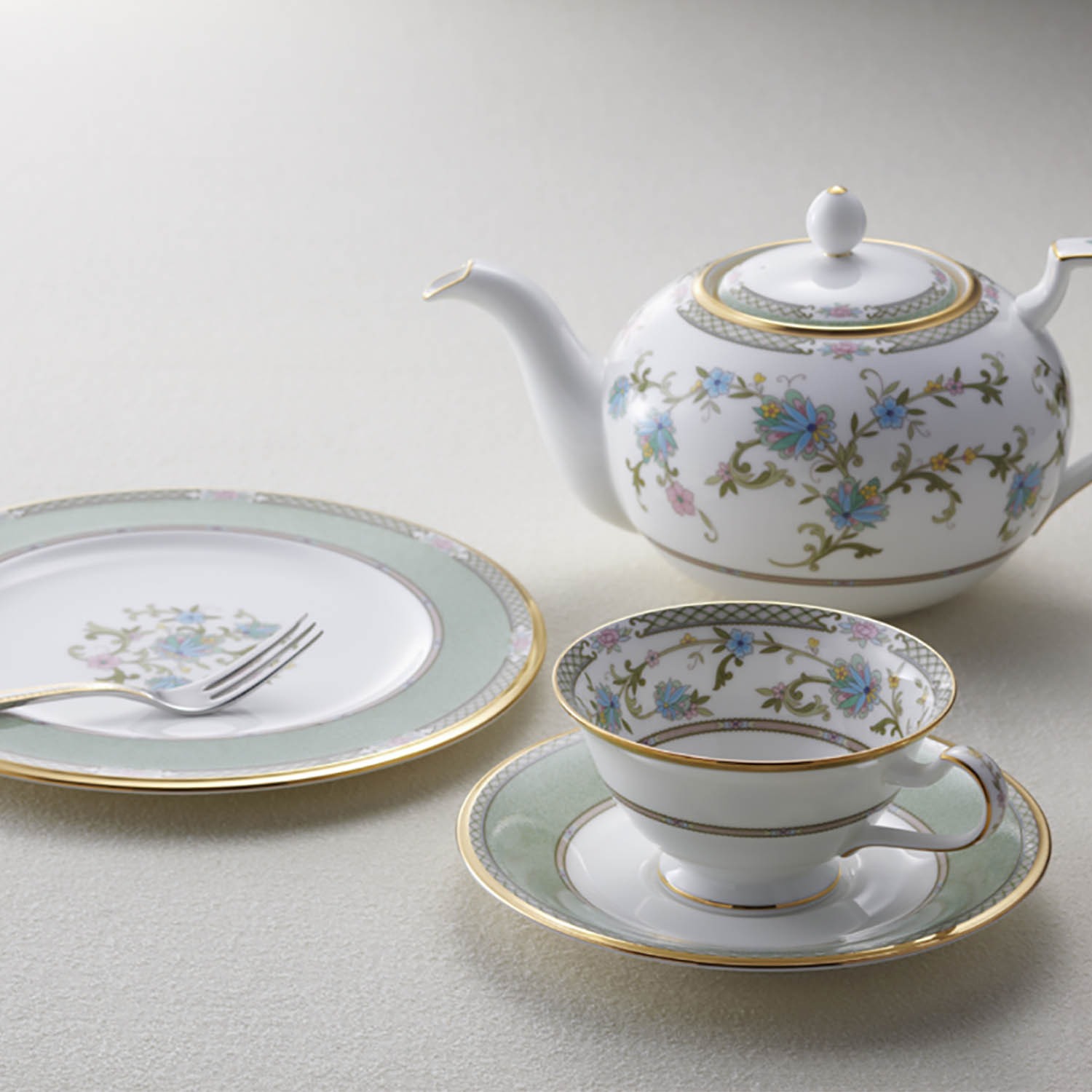 日本人が古来から愛する桜への想いをオリエンタルな唐草文様で表現した、日本の洋食器ならではの美しさを湛えるシリーズです。
