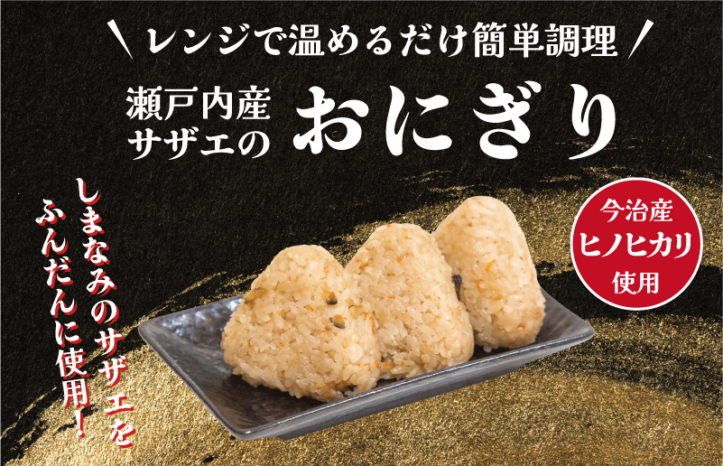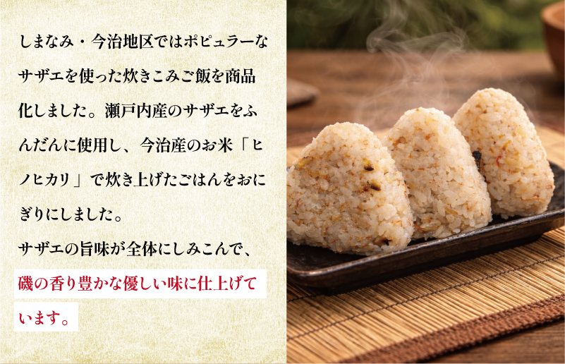 直売所「さいさいきて屋」でも販売しており、好評の商品です。瀬戸内の客席で振舞われる「サザエ飯」をおむすびにした贅沢な逸品をぜひご家庭でお召し上がりください。