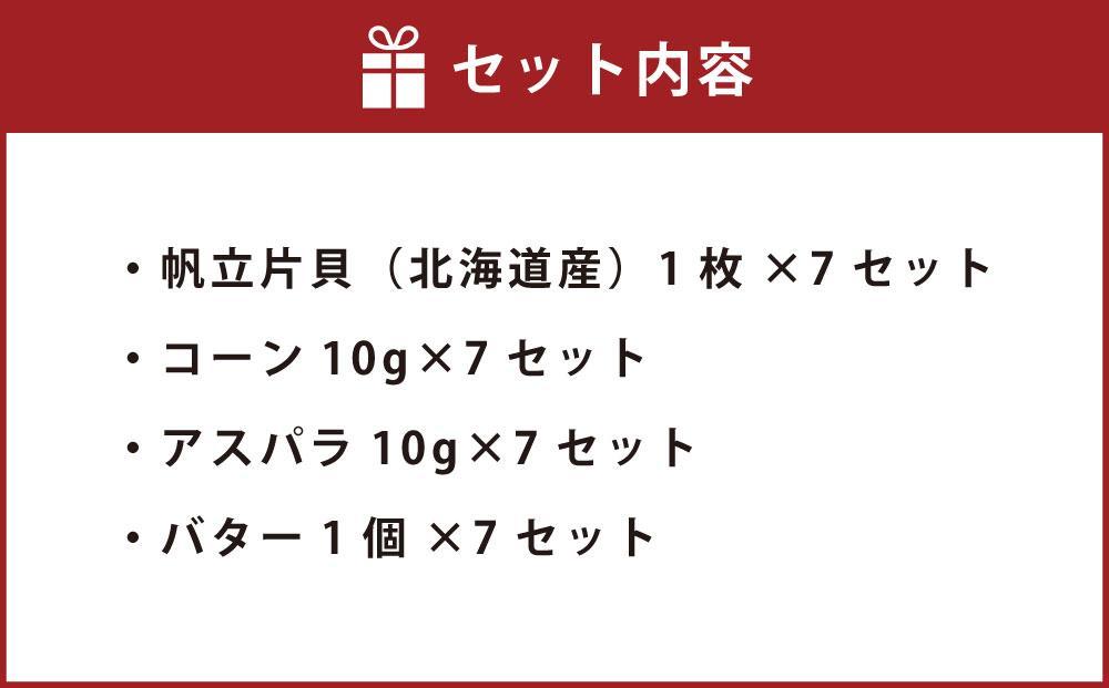 帆立バター焼きセット(帆立片貝1枚(北海道産)、コーン10g、アスパラ10g、バター1個)×7