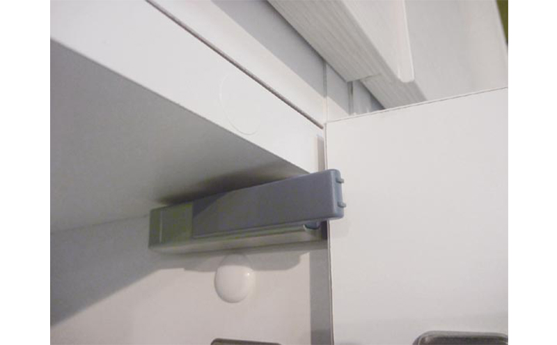 引っかかり防止で引手のないすっきりとしたデザイン、安全機能として耐震ラッチを標準装備:地震等の振動で扉が開くのを防いでくれます。