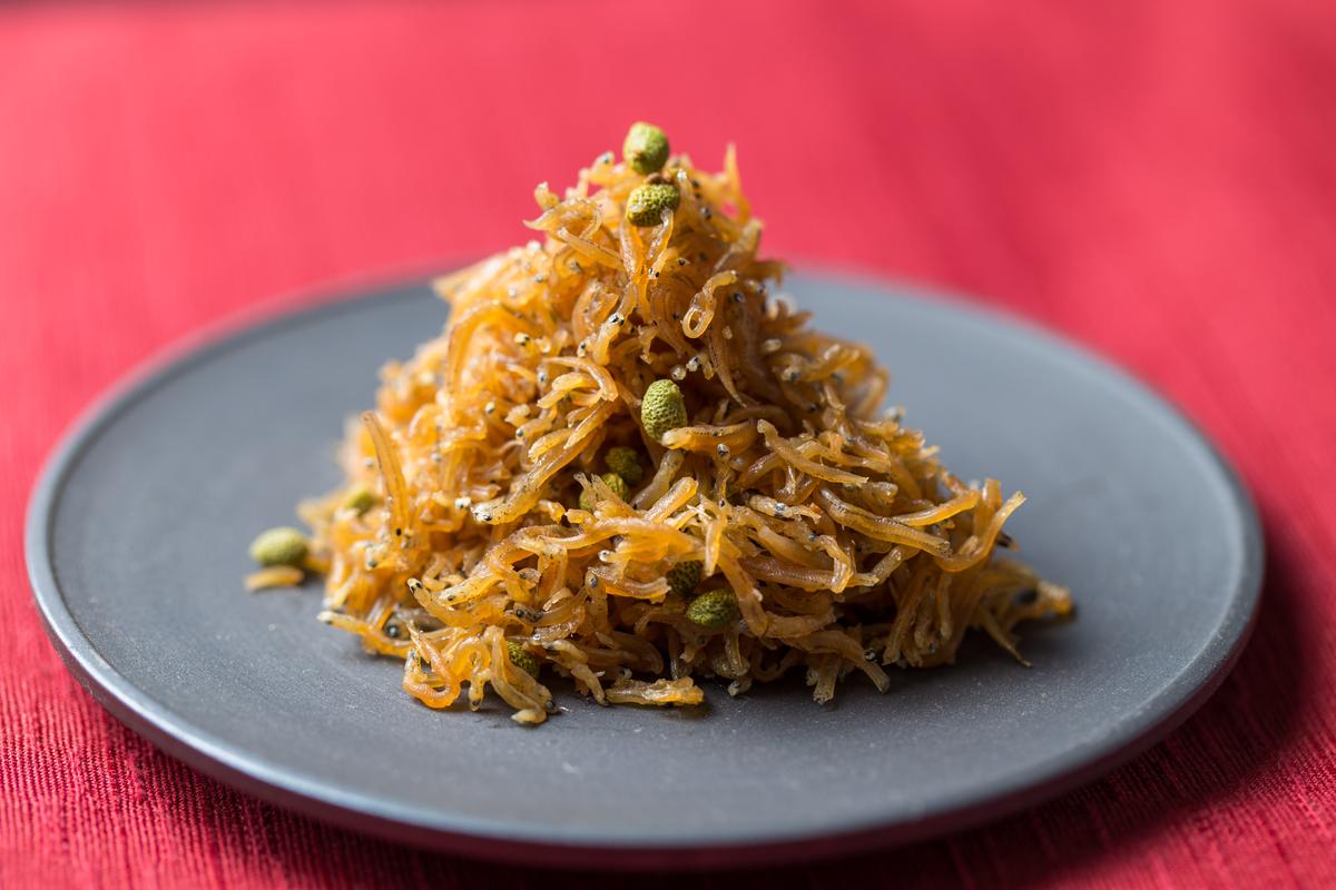 和歌山県湯浅湾近海で水揚げされたしらすを大釜の厚釜でいっきに踊り炊きした、旨みたっぷりの、ふんわりぷりっぷりの釜揚げしらすと、地元湯浅の湯浅醤油と日本一の山椒処!