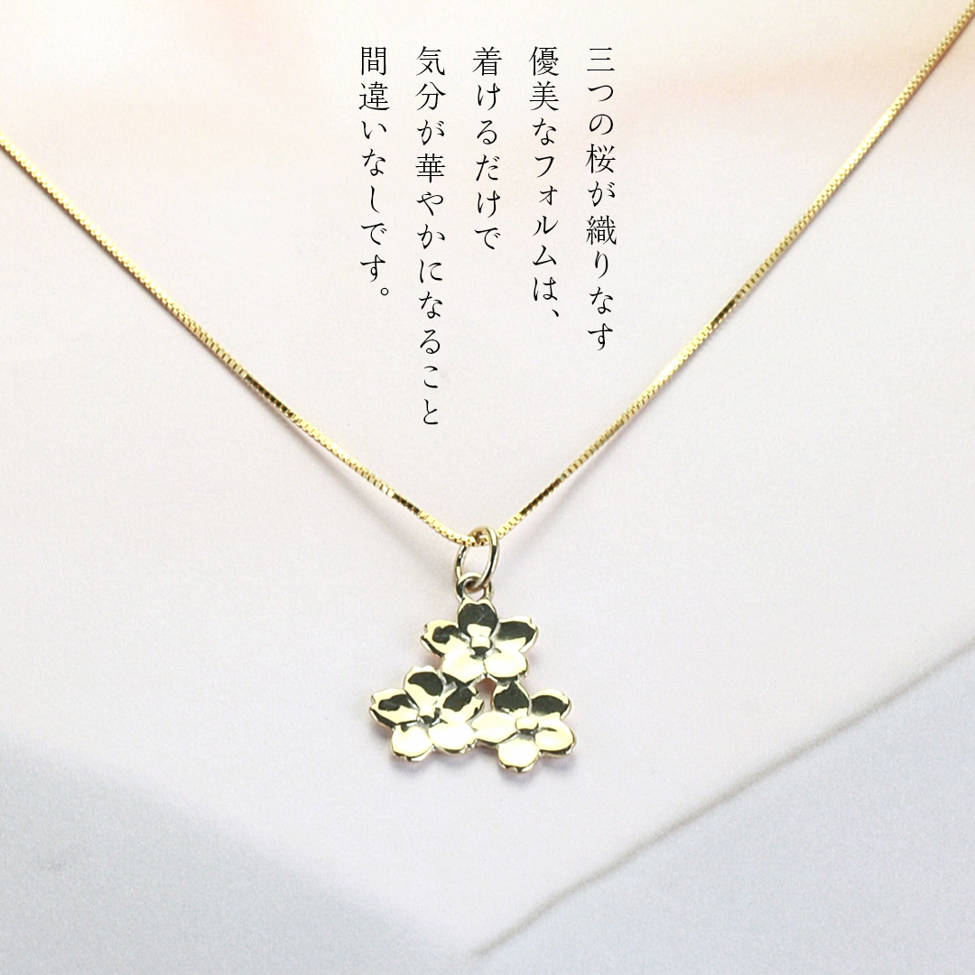 三つの桜が織りなす優美なフォルムは、着けるだけで気分が華やかになること間違いなしです。