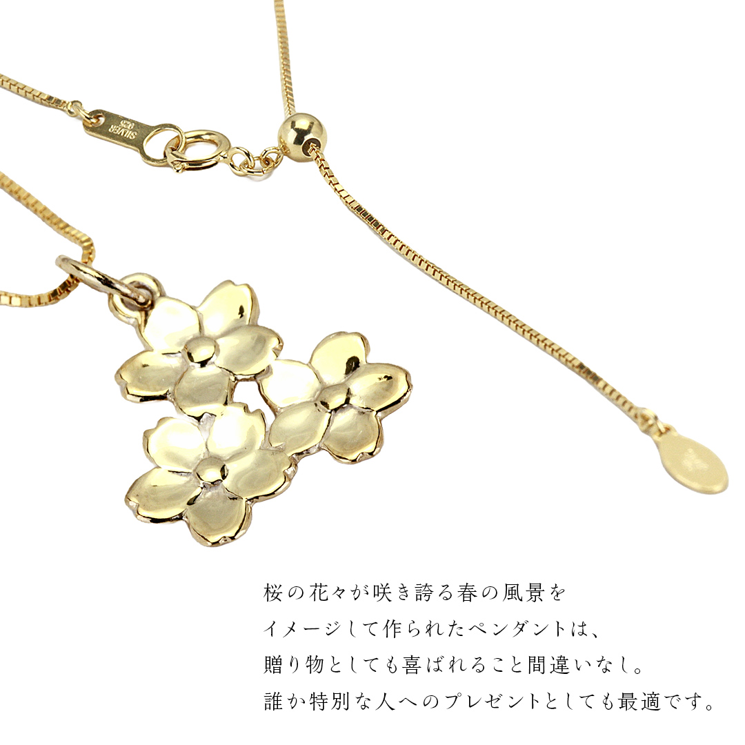 桜の花々が咲き誇る春の風景をイメージして作られたペンダントは、贈り物としても喜ばれること間違いなし。