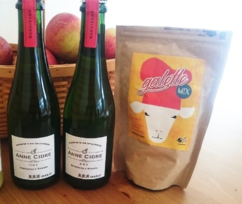 シードル(りんご発泡酒)375ml×2本、ガレット粉240g×1袋