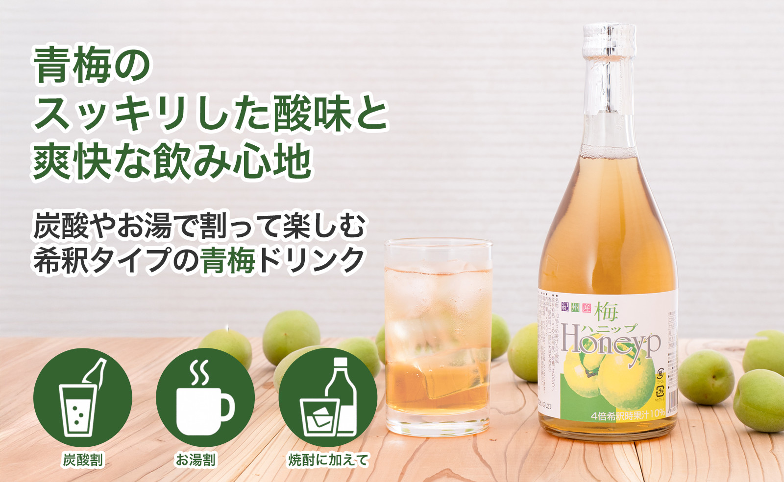 紀州特産の梅に砂糖を加えて抽出した果汁とはちみつをブレンドした果汁入り飲料「梅ハニップ」です。