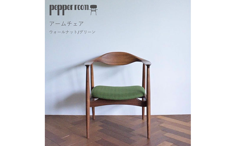座面にはグリーンのヘリンボーン柄の生地を使用しています。