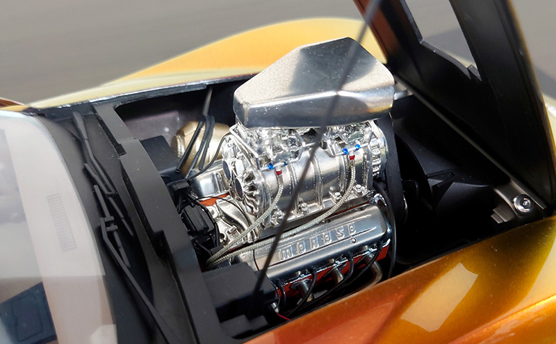 エンジンはキットに付属していないスーパーチャージャーを装着。アメリカンマッスルを再現しています。