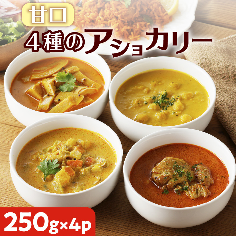 チキン入りスリランカカリー、豆カリー、野菜カリー、たけのこカリーを揃えた4Pセットを、ぜひご賞味ください♪