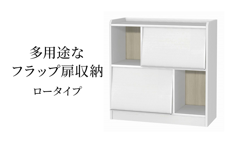 北欧風の多用途フラップ扉収納。カラーは計4色。