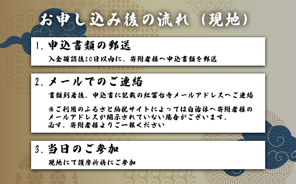 書類到着後、申込書に記載の紅冨台寺メールアドレスへご連絡