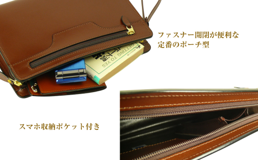 【日本製の安心感】 創業50年の実績と日本製セカンドバッグの安心感!!淡路かばん工房の熟練の鞄職人が製作した、スマホポケット付属のメンズポーチ。最近、入手が難くなってきた日本製のセカンドバッグです。